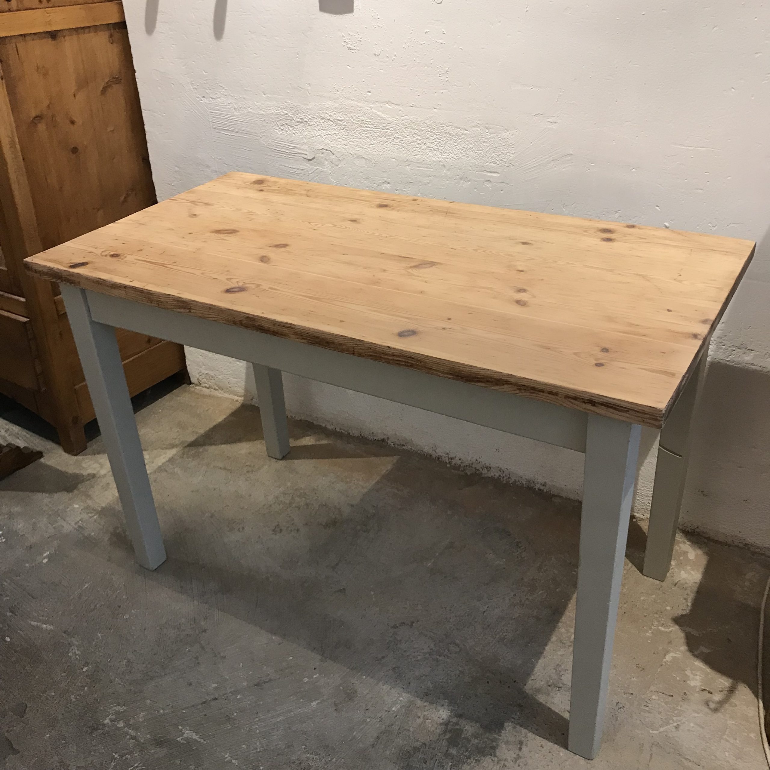 Aquest elegant escriptori de fusta restaurat és una peça única, elaborada amb fusta de gran qualitat i restaurada amb cura per conservar la seva autenticitat. El sobre de fusta ha estat tractat per preservar-ne la durabilitat i destacar-ne la bellesa natural, mentre que les potes han estat pintades en un to neutre per donar-li un aire fresc i modern. Ideal tant per a espais de treball com per a zones d’estudi o decoració, aquest escriptori combina perfectament funcionalitat i estètica.